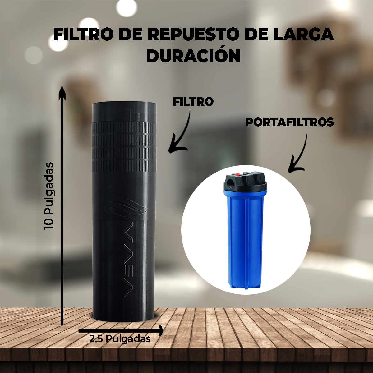 Paquete de 3 filtros de Repuesto para Agua rica en Magnesio o Alcalina ¡Con Portafiltros de REGALO!
