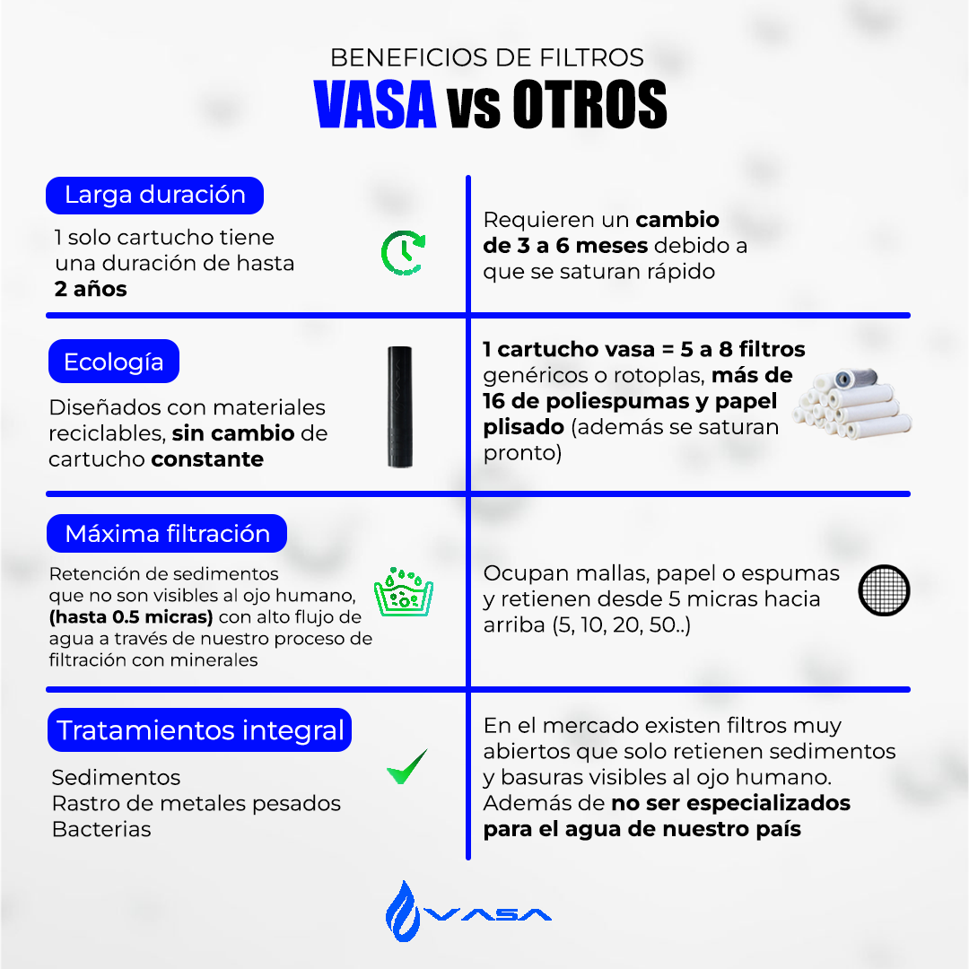 B) LARGA DURACIÓN: 1 cartucho vasa tiene una duración de hasta 2 años, en comparación con otros de cambio de 3, 6 y 9 meses